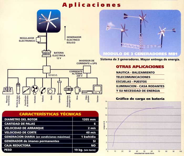 • ASPAS: De plastico reforzado con fibra de vidrio. Mayor contacto con el viento y rendimiento superior. Cantidad: 6. Mejora sustancialmente el arranque en brisas.