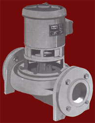 CARACTERISTICAS CONSTRUCTIVAS La electrobomba, centrífuga, vertical, monoblock, está diseñada expresamente para la circulación forzada del agua, en instalciones de calefacción. La construcción de la bomba permite, en caso de no funcionar, la circulación natural del agua caliente, por termosifón, a través de la misma, con pérdida de craga mínima. Los orificios de aspiración e impulsión, a bridas, on horizontales y opuestis en línea, lo que permite intercalar la bomba en una cañería recta. El cuerpo, de hierro fundido tiene patas de apoyo en las bridas; rotor de bronce o hierro fundido; eje prolongado del motor, con manguito de protección en el prensaestopa; motor eléctrico, asincrónico, trifásico, vertical, a brida, protegido contra goteo.